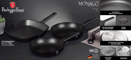 - Berlinger Haus - Berlinger Haus BH/7096 Monaco Collection Bratpfannen Set 3 tlg. in schwarz Normaler Preis €55,99 EURGrundpreis /Nicht verfügbar