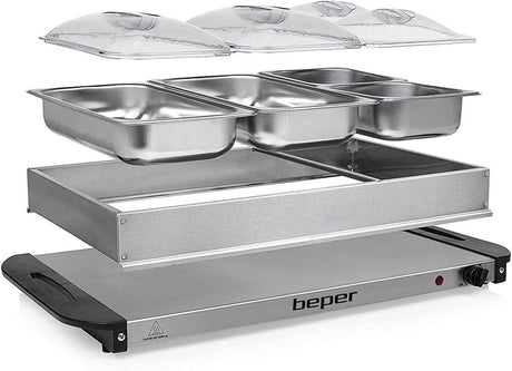 BEPER P101TEM002 Buffetwärmer aus Stahl/Kunststoff Grau metallic Essenswärmer Warmhalter
