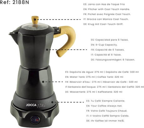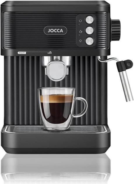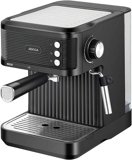 Jocca Espressomaschine Schwarz 850W – 20 Bar Druck, 1,8L Tank, Milchaufschäumer, Edelstahl