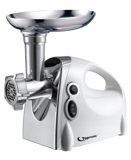 Topmatic MG-1200.3 Weiss elektrischer Fleischwolf 1200W Edelstahl Rückwärtslauf Sicherheitsschalter