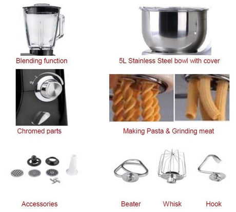 Topmatic PKM-1800.1BG Schwarz Multifunktion Mixer 1800W Teigmaschine Fleischwolf