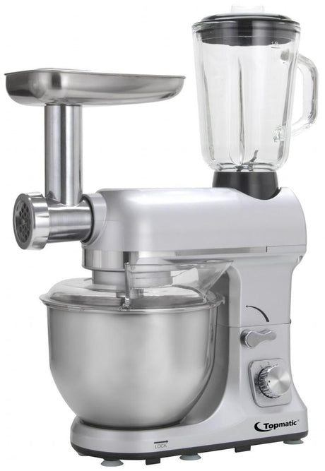 Topmatic PKM-1800.1BG Silberfarben Multifunktion Mixer 1800W Teigmaschine Fleischwolf