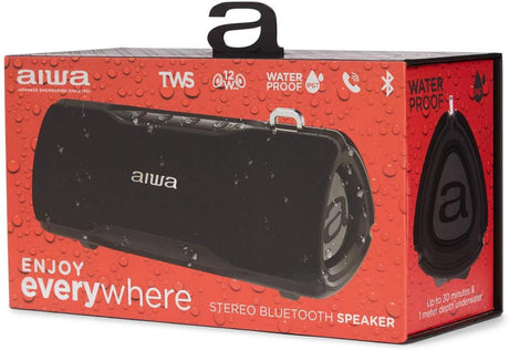 Aiwa BST-500BK schwarz Bluetooth Lautsprecher Boombox TWS, IP67, 12W, Hyperbass, Freisprechfunktion