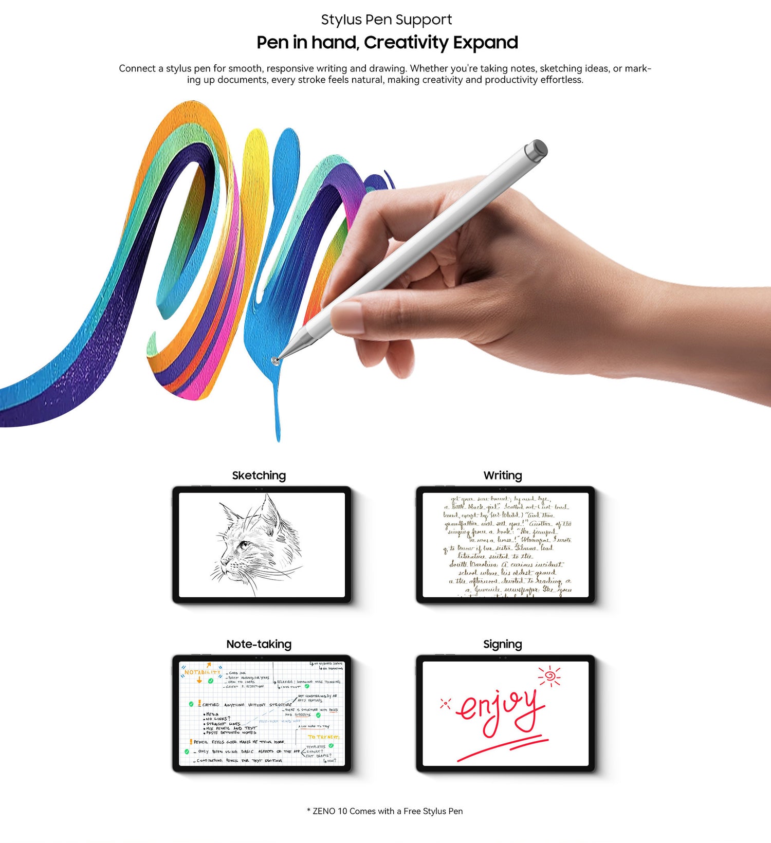 Erleben Sie das ZENO 10, das intelligenteste 5G KI-Tablet. Mit UNISOC Tiger T8200, 24 GB RAM und bis zu 256 GB Speicher + 2 TB erweiterbar, ist es ideal für Arbeit, Kreativität und Unterhaltung unterwegs.