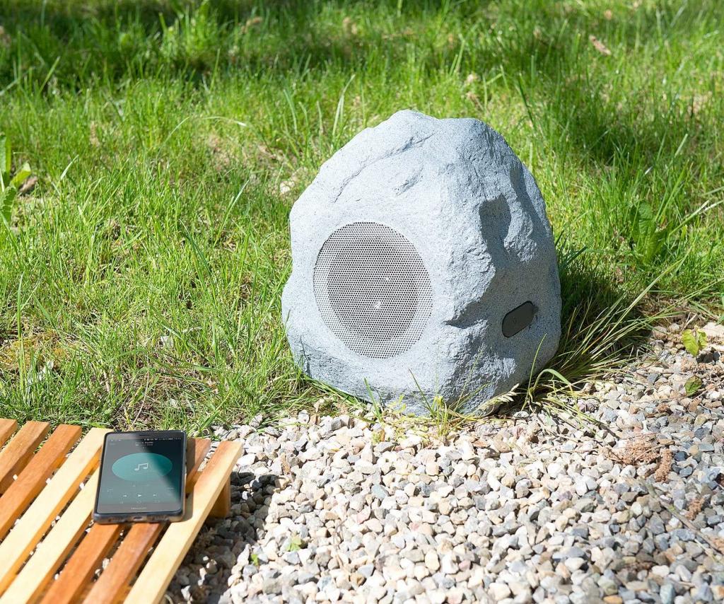 Der Lautsprecher für den Außenbereich: Der optisch einem Stein ähnelnde Lautsprecher enthält moderne Technologie, um jederzeit Ihre Lieblingshits zu spielen. Kabelloses Streaming: Streamen Sie Ihre Musik von Ihrem Smartphone, Tablet und mehr über Bluetooth. Sie können immer hören, was Sie hören wollen! Musik für Ihre Gartenparty: Dank 30 Watt Spitzenleistung können Sie auch auf der anderen Seite Ihres Gartens oder Hofs Musik hören. Ideal für die Unterhaltung aller Gäste - ob Grillabend oder Kaffee und Kuchen. Auffällig unauffällig: Der Kunststein lässt sich fast überall schön platzieren - ob auf der Terrasse, im Garten oder im Hof. Der integrierte Lautsprecher ist nur bei genauem Hinsehen sichtbar.