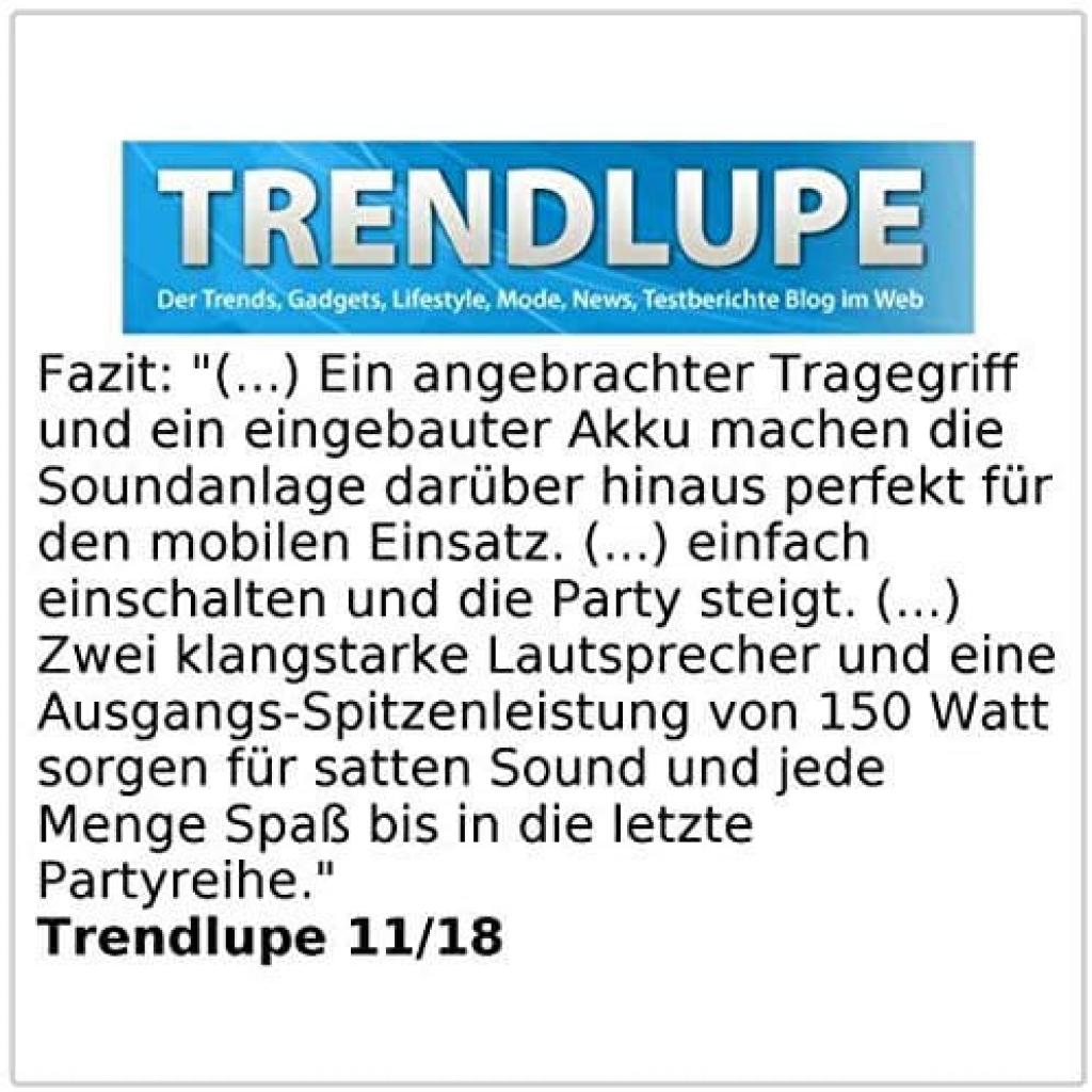 Sorgen Sie auf jeder Party für gute Stimmung: Dank kraftvollem Sound und Karaoke-Funktion ist die Partyanlage ein echter Spaßgarant. Das blaue LED-Licht macht ihn zum coolen Hingucker.