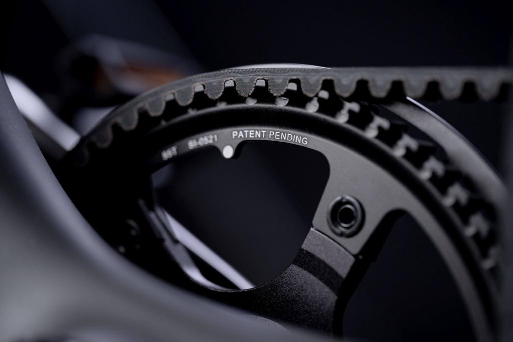 Zusätzlich wird das Fahrrad nicht mit einer Kette betrieben, sondern mit einem wartungsfreien Zahnriemen von der Marke "Gates", ebenfalls aus Carbon!