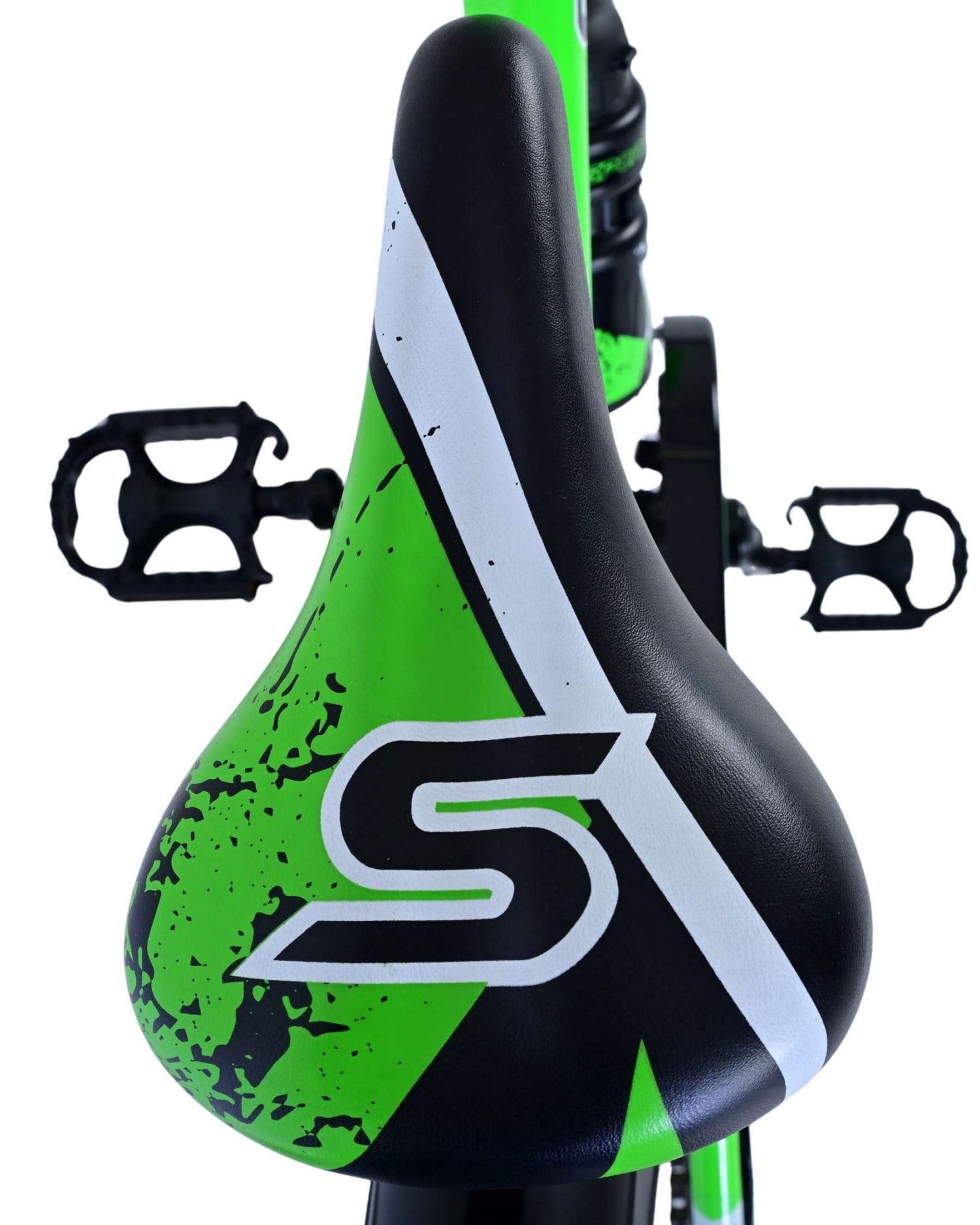 Das Volare 26-Zoll Sportivo kombiniert Top-Qualität mit modernem Design! Sicherheit steht an erster Stelle! Deshalb hat dieses coole Fahrrad KEINE Rücktrittbremse, sondern zwei Handbremsen. Außerdem hat das Fahrrad eine schöne Klingel, Reflektoren vorne und hinten und in den Rädern. Auch an den Komfort wurde gedacht. Das schöne schwarze Volare-Fahrrad mit grünen Akzenten hat einen luxuriösen weichen Sattel und extra weiche Griffe sowie einen stabilen Rahmen, der einiges aushält. Außerdem hat das Fahrrad einen Ständer, damit es ordentlich an seinem Platz bleibt. Um möglichst lange Freude an dem Fahrrad zu haben, hat es eine extra lange Sattelstütze, damit das Fahrrad noch länger mit dem Kind mitwächst, und der Lenker ist in der Höhe verstellbar.