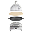 Multi-Kulti-Gasgrill: Portabler Grill inkl. Pizzabackhaube, Pizzastein, Gussgrillplatte und umfangreichem Zubehör