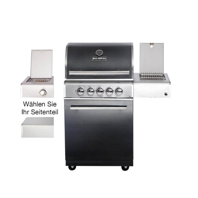 Top-Einsteiger: Edelstahl Gasgrill MODULAR-TOP-LINE-ALL'GRILL' CHEF "M" BLACK EDITION mit 3 Brennern 17,2 kW inkl. Seitenkocher und Backburner