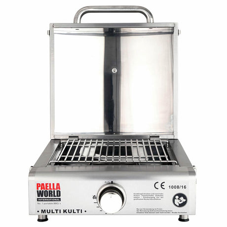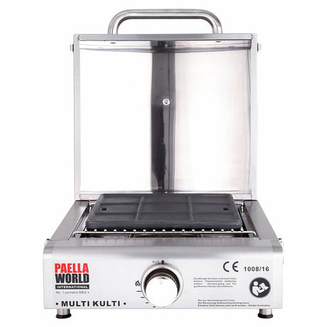 Beper 90.871 Elektrogrill mit Glasdeckel, beschichtete Grillplatte, Edelstahl, 2200 W