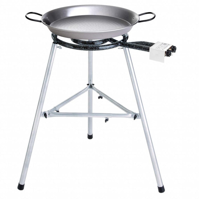 Das Paella Grill-Set inkl. Paella-Pfanne: Comfort Line 3 ist das perfekte Produkt für alle, die gerne mit der Familie oder Freunden eine leckere Paella zubereiten möchten. Mit einer Pfanne aus poliertem Stahl mit einem Durchmesser von 55 cm und einem 2-Ring-Brenner mit einem Durchmesser von 40 cm und einer Leistung von 11,4 kW bei 30 mbar bietet dieses Set alles, was Sie für ein gelungenes Grill-Erlebnis benötigen.
