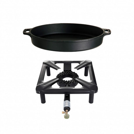 Hockerkocher und Gusspfanne Ø 35 cm - ideal für Camping und Profiköche - Aktion Set Angebot!