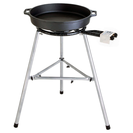 Großes Grillset: Pfanne 80 cm mit 3-Ring-Brenner und Dreibein-Ständer - ideal für Gastro/Catering