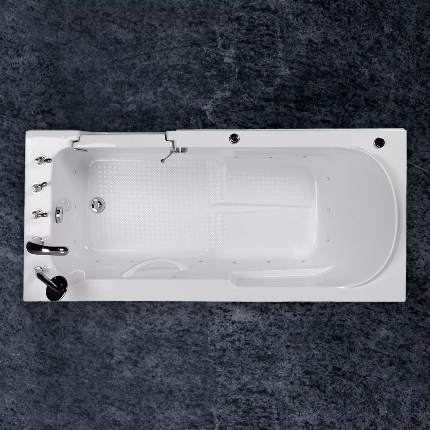 Unsere Badewanne ist mit einer integrierten Tür ausgestattet, die einen leichten Einstieg ermöglicht. Sie müssen sich keine Sorgen mehr machen, wie Sie in die Badewanne steigen können, denn unsere Tür macht es einfach und bequem. Die Armaturen sind gut erreichbar und ermöglichen eine einfache Bedienung.