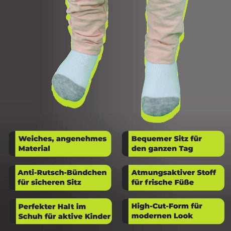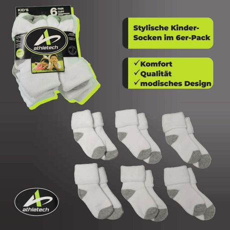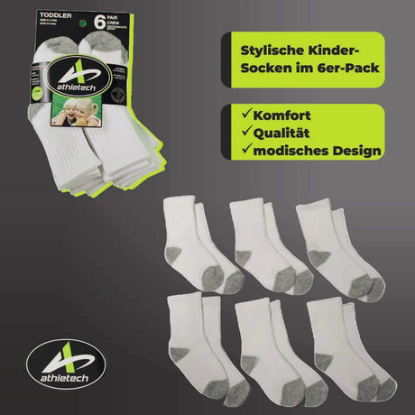 Athletech 6 Paar Sportsocken für Kinder 2-3 Jahre bis Gr. 28 hoher Bund grau weiß