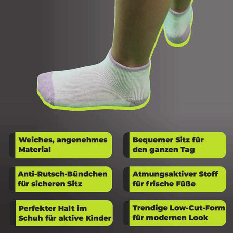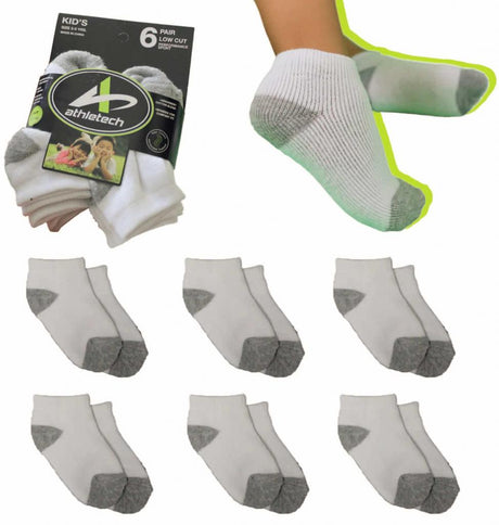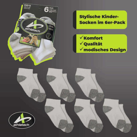 Athletech 6 Paar Low-Cut-Sportsocken für Kinder 3-5 Jahre bis Gr. 34 grau weiß