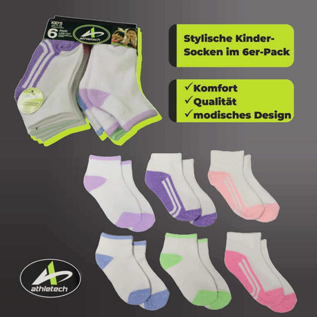 Athletech 6 Paar Low-Cut-Sportsocken für Kinder 3-5 Jahre bis Gr. 34 Pastellfarben
