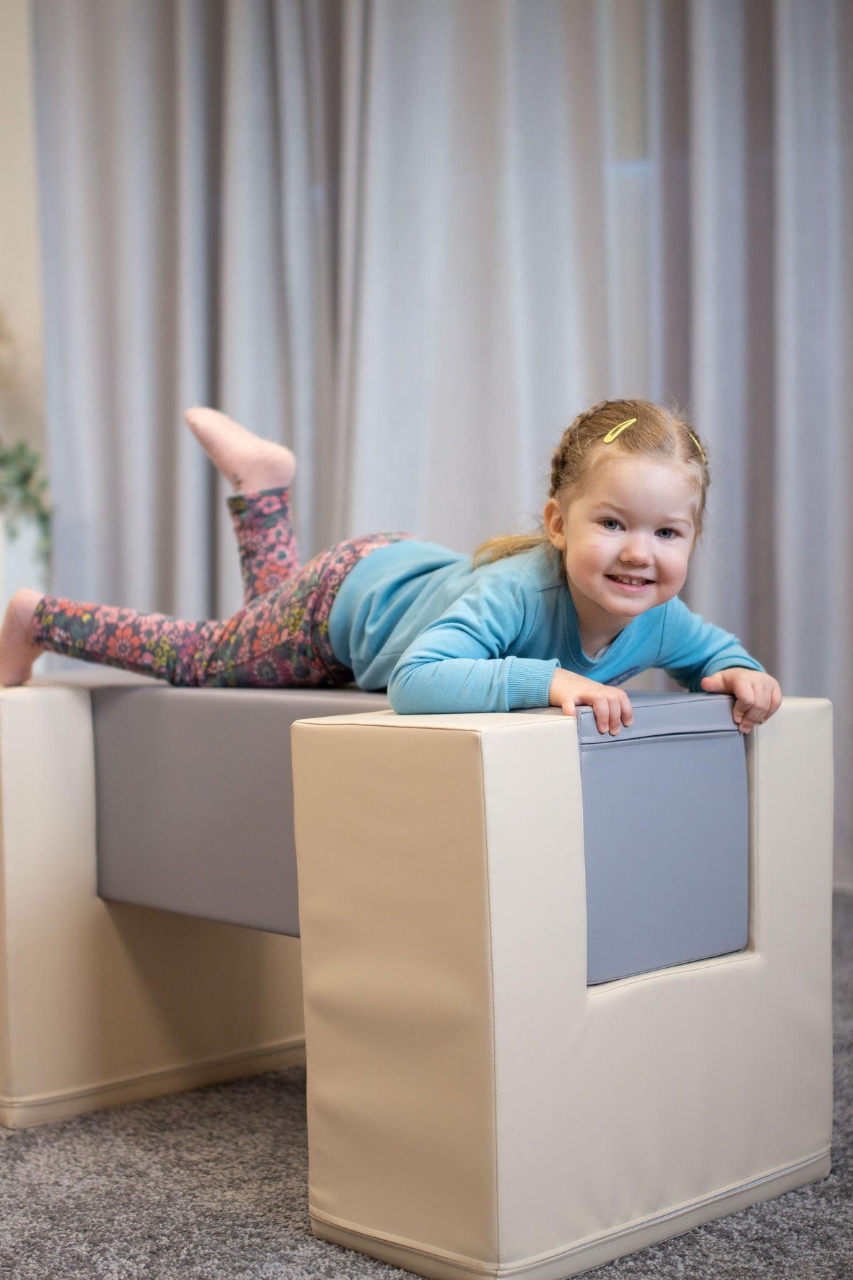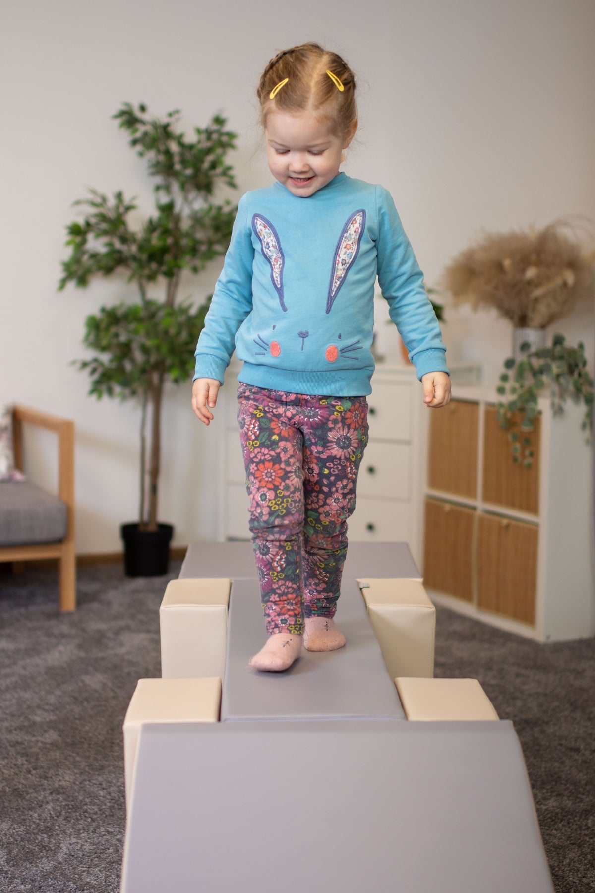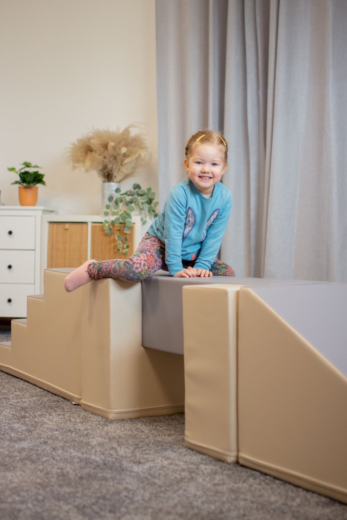 IGLU SET Balance Bridge 3 - Beige/Grau - Bunte Balance-Brücke aus Schaumstoffbausteinen für Kinder