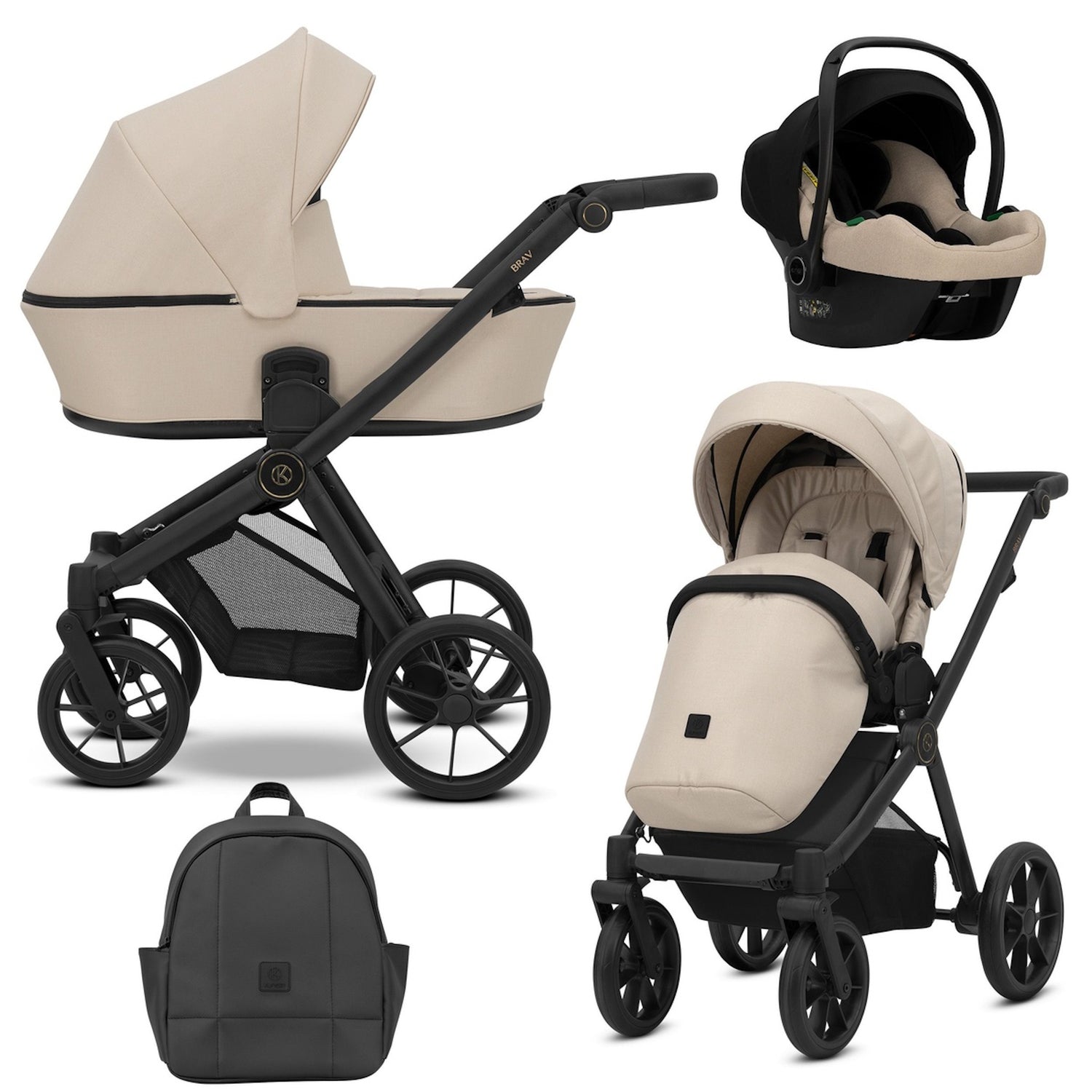 BRAV 3in1 Kinderwagen mit schwarzem Rahmen, Eco-Gelrädern und vielseitigem Zubehör