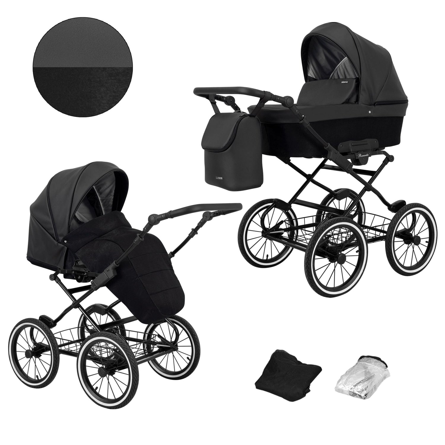 Kunert Romantic 2 in1 Öko-Leder Kinderwagen mit AIR WHEEELS und schwarzem Rahmen