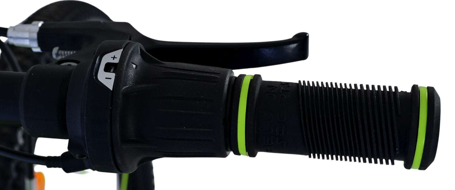 Das grüne 26-Zoll-Kinderfahrrad Rocky ist perfekt für junge Radfahrer, die Abenteuer, Komfort und Sicherheit suchen. Die farbigen Speichen verleihen dem Fahrrad einen coolen Look, während die 7 Gänge dafür sorgen, dass Ihr Kind mühelos schalten kann.