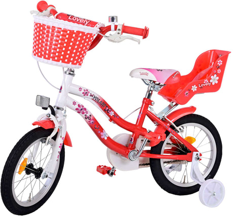 Volare Lovely Kinderfahrrad - Mädchen - 14 Zoll - Rot Weiß - 2 Handbremsen