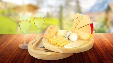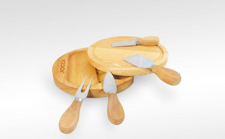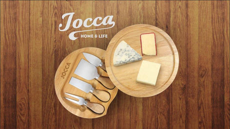 Jocca Käsebrett aus Kautschukholz mit 4 Käsemesser für Käsegenuss und kalte Speisen