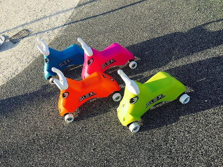 SLEX RodeoBull Rutschfahrzeug in grün Kinder Rutschauto ABEC 3 Longboard Rollen bis 35kg