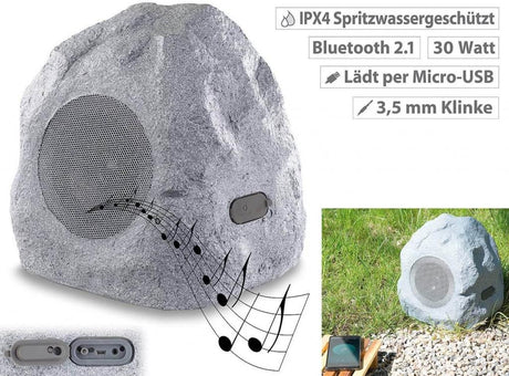auvisio Gartenlautsprecher MSS-430.rock Garten- und Outdoor-Lautsprecher Stein-Design Bluetooth IPX4