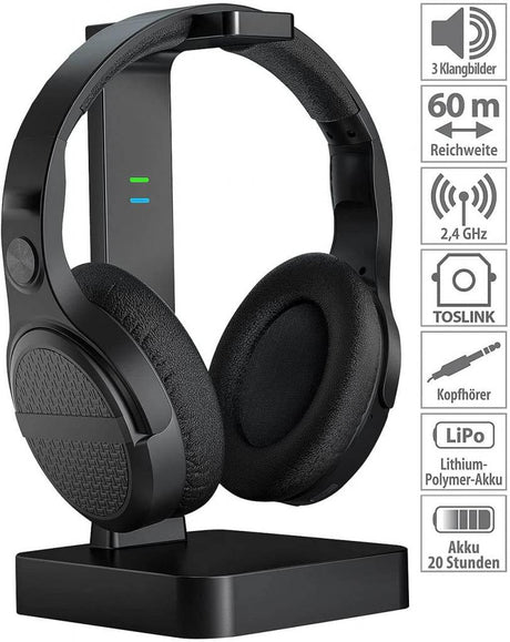 auvisio OK-320 Fernseh Kopfhörer Digitaler Stereo-Funk-Kopfhörer mit Akku & DSP 2in1-Ladestation