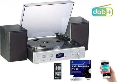 auvisio Musikanlage MHX-620 Plattenspieler/Digitalisierer, BT, DAB+, CD, MC, USB, MP3