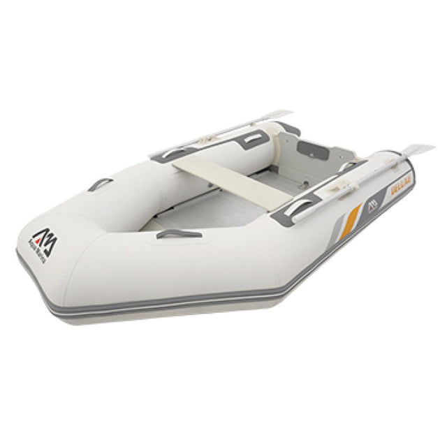 Aqua Marina Schlauchboot 4 Personen 296x153 cm mit Hochdruck-PVC-Gewebe Handpumpe Sitzbank Transporttasche Holzboden Paddel bis 10 PS Weiß