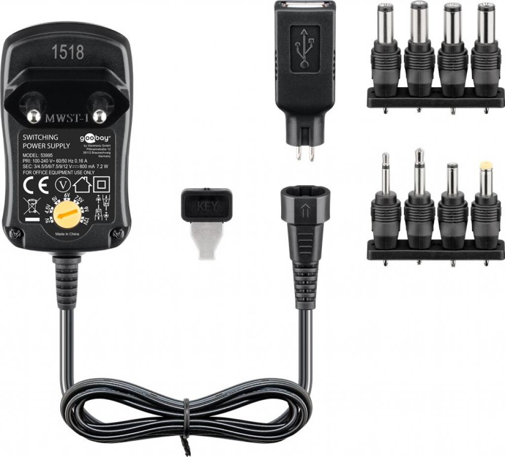 EcoFriendly Netzteil universell 600mA, einstellbar von 3-12V mit 8 DC + 1 USB Adapter