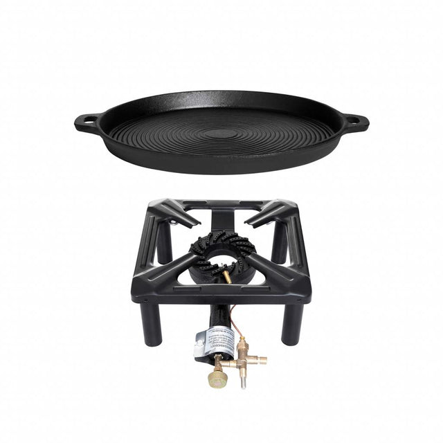 Der Hockerkocher mit Zündsicherung und die Gusspfannen ø 35cm sind der ideale Begleiter für Camping und Freizeit sowie für alle Profiköche zu Hause oder unterwegs. Mit diesem Set Angebot erhalten Sie alles, was Sie für ein perfektes Kocherlebnis benötigen.