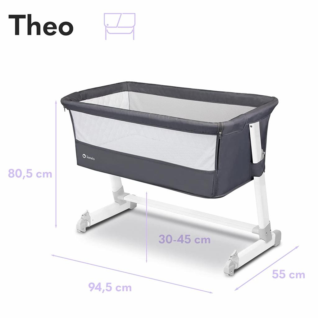 Lionelo Theo Baby Beistellbett Kinderbett dunkelgrau Babybett Zustellbett