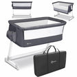 Baby Beistellbett von Lionelo - Theo Beistellbett in dunkelgrau mit Matratze, Tasche, Moskitonetz und Organizer