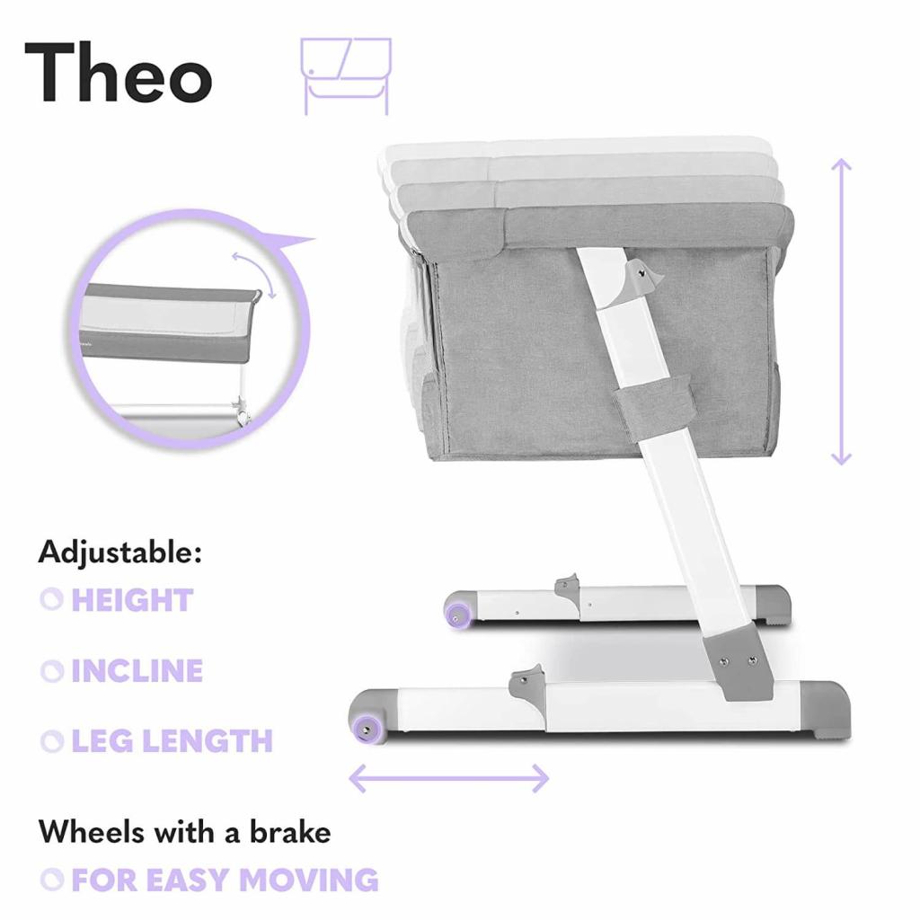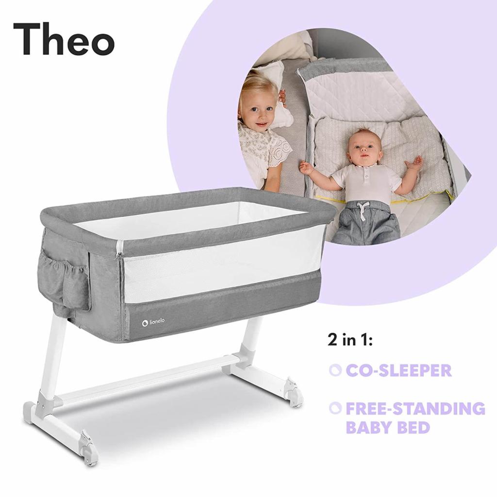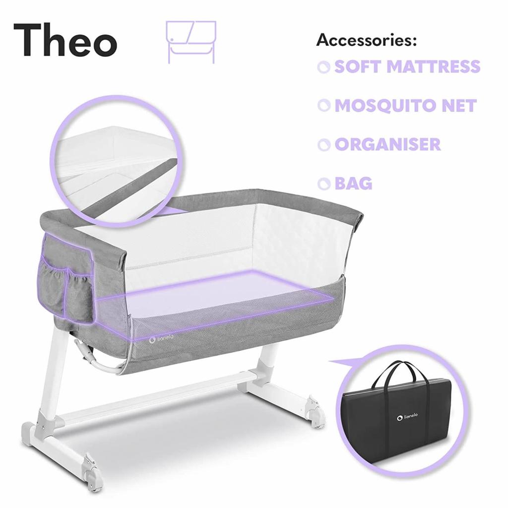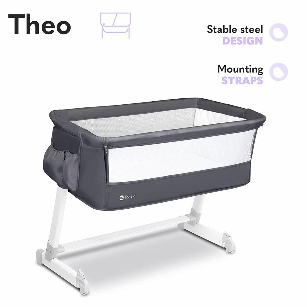 Lionelo Baby BeistellbettTheoingrau mit Matratze,Moskitonetz,Organizerund Tasche