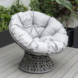 PureHaven Lounge Sessel 92x80x80,5 cm aus Rattan Rundkissen drehbar 360 Grad pflegeleicht elegantes Design verstellbare Kunststofffüßchen Grau/Grau