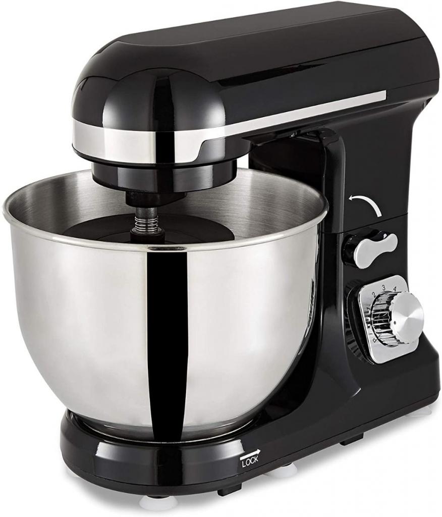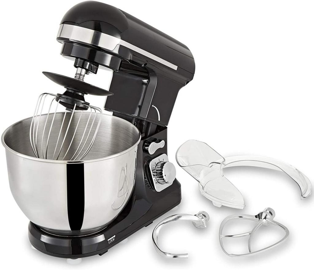 Durch die kompakte Bauform der Maschine, ist diese sehr platzsparend. Das Rührwerk wird über ein Planetengetriebe angetrieben und kann über 6 Geschwindigkeitsstufen eingestellt werden. Dadurch wird die gewünschte Masse optimal verarbeitet.Dank der Druckguss-Knethaken können auch schwere Teige, wie z.B. Hefe- oder Brotteig hergestellt werden. Der Schneebesen hingegen ist geeignet für Sahne, luftigen Eischnee oder Ähnliches. Die 5 Liter Edelstahlschüssel nimmt nicht nur große Mengen auf sondern hat auch einen transparenten Spritzschutz. Die Küchenmaschine hat auf der Unterseite Gummi-Saugfüße, wodurch die Maschine immer einen festen Stand bewahrt.