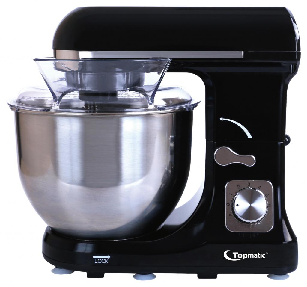Topmatic Küchenmaschine PKM-1400.2 schwarz| Teigmaschine, Rühr- und Knetmaschine mit5Liter Edelstahlschüssel und transparentem Spritzschutz