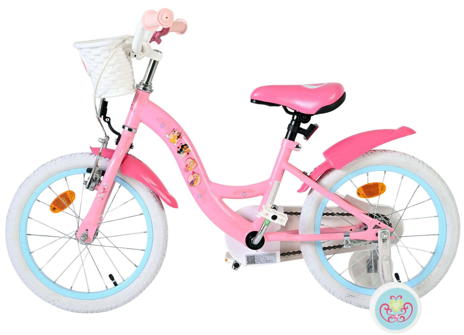 Disney Princess Kinderfahrrad - Mädchen - 16 Zoll - Rosa mit Korb, abnehmbaren Stützrädern und geschlossenem Kettenschutz