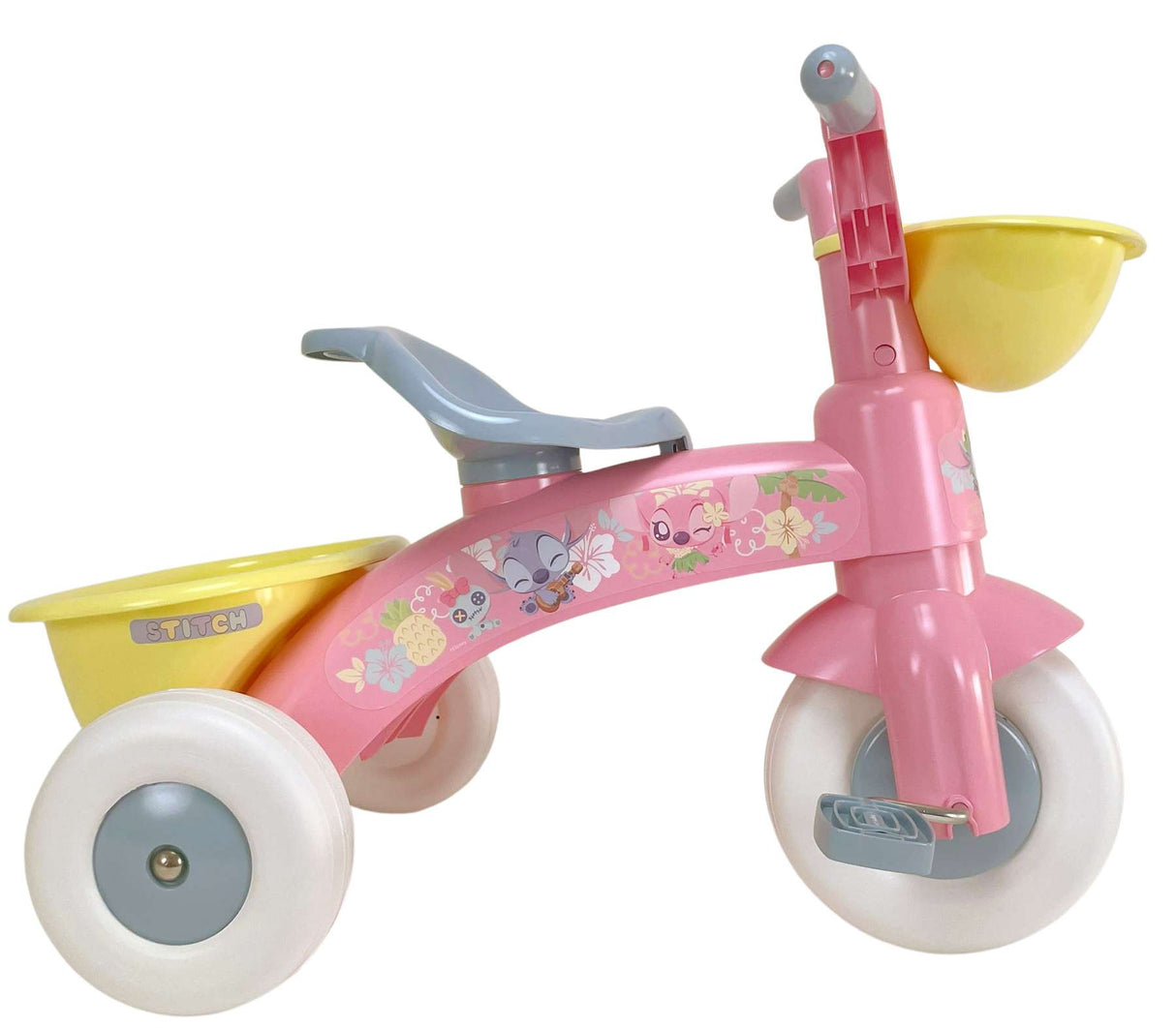 Bereichern Sie die Spielzeit Ihrer Kleinen mit dem Dreirad Disney Stitch in fröhlichem Hellrosa! Dieses niedliche und praktische Dreirad ist das perfekte Transportmittel für kleine Abenteurer, die die Welt mit einem Hauch von Stitch-Zauber entdecken wollen. Hellrosa Farbe mit fröhlichen Details. Harte Reifen, die nicht platt werden können, so dass man sich nicht um die Wartung kümmern muss.