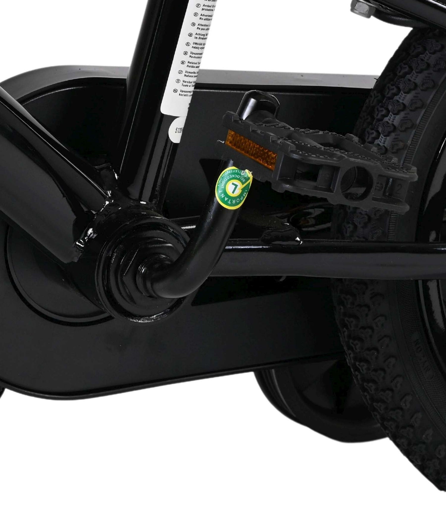 Mit dem Volare Super GT 12 Zoll Kinderfahrrad macht das Fahrradfahren lernen jedem Kind Spaß! Sicherheit steht an erster Stelle: das Fahrrad verfügt über eine Handbremse und eine Rücktrittbremse, einen geschlossenen Kettenschutz und abnehmbare Stützräder. Reflektoren an den Rädern sowie vorne und hinten und eine lustige Klingel sorgen für bessere Sichtbarkeit und Spaß. Komfort wird großgeschrieben: das schwarze Fahrrad mit grünen Akzenten hat einen weichen Sattel, ein zeitloses Design und einen stabilen Rahmen, der kleine Stöße abfedert. Sattel und Lenker sind höhenverstellbar, damit das Kind länger Freude am Rad hat. Alle zur Montage benötigten Teile sind im Lieferumfang enthalten. Kurz gesagt: ein hochwertiges Kinderfahrrad, an dem Ihr Kind viele Jahre Freude haben wird.